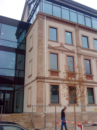 Nachdem der inzwischen pensionierte Denkmal"pfleger" Baumann dem "größeren Volumen des DVAG Projektes den Vorrang" gegenüber dem Denkmalschutz der Rosenstraße9 gegeben hatte, wurde diese abgerissen und die Fassade für eine spätere Verwendung aufgehoben. Inzwischen steht das Tagungs-und Museumszentrum der DVAG und man kann sehen, wie die ehemalige Fassade auf den Neubau aufgebracht wurde - oder auch nicht.....